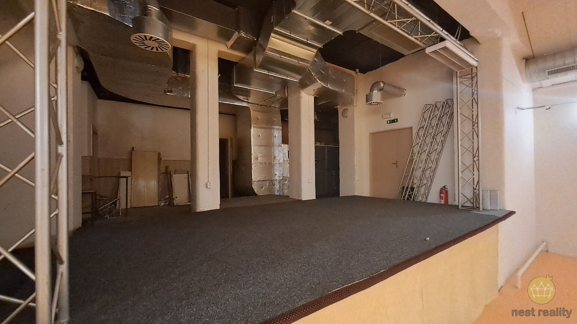 Nabízím skvělou nabídku pronájmu nebytových prostor o celkové velikosti 394 m², který se nachází v žádané lokalitě města Kolín, ulici Husovo náměstí. Jedná se dvoupodlažní prostory, nacházející se v přízemí budovy umístěné v centru a středu Husova náměstí. V současnosti je prostor nevyužíván a v minulosti fungoval jako taneční studio, prostory pro divadlo a jako architektonická kancelář. Hlavní vchod do nebytového prostoru je přímo z parku Husitského náměstí. Je zde zároveň i vedlejší vchod a ten je vhodný hlavně pro zásobování. Složení nebytového prostoru je jeden velký sál o výměře 120 m2, dále je zde jeviště o výměře 78,6 m2 a dále dvě místnosti, které sloužili jako klubovna s barem 39 m2 a líčírna 18 m2. O patro výše se nachází druhá klubovna s výhledem na velký sál a jeviště, dále je zde předsálí 61 m2, schodiště 15 m2 a dámská a pánská toaleta s umývárnou o celkové výměře 23,5 m2. Nebytový prostor má i zařízenou kuchyňku a samostatné WC pro personál. Všechny prostory jsou vytápěná a suché. Topení je parní s radiátory pro komerční prostory. Je zde nainstalována vzduchotechnika s možností dělení. Nabízené prostory jsou vhodné ke komerčnímu využití např pro skladování pro otevření klasického obchodu, skladu, vzorkovny a výdejny e-shopu, kanceláře, služeb (e-shopu, masážního studia, dílny nebo atelieru). Naopak se v prostorách kvůli hlučnosti nedá provozovat diskotéka, kasino nebo herna. Též prostory mohou fungovat zájmových skupinám provozující umělecké činnosti. Na podlahách je položena dlažba, zátěžový koberec, v sále je neklouzavé PVC. Prostor se dá upravit dle přání budoucího nájemce po dohodě s majitelem. Nemovitost je v přímém dosahu MHD. Parkování je možné na ulici a to zcela zdarma. Doporučuji prohlídku.